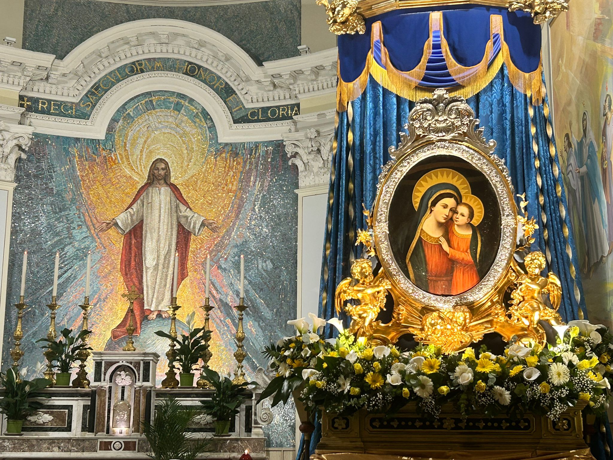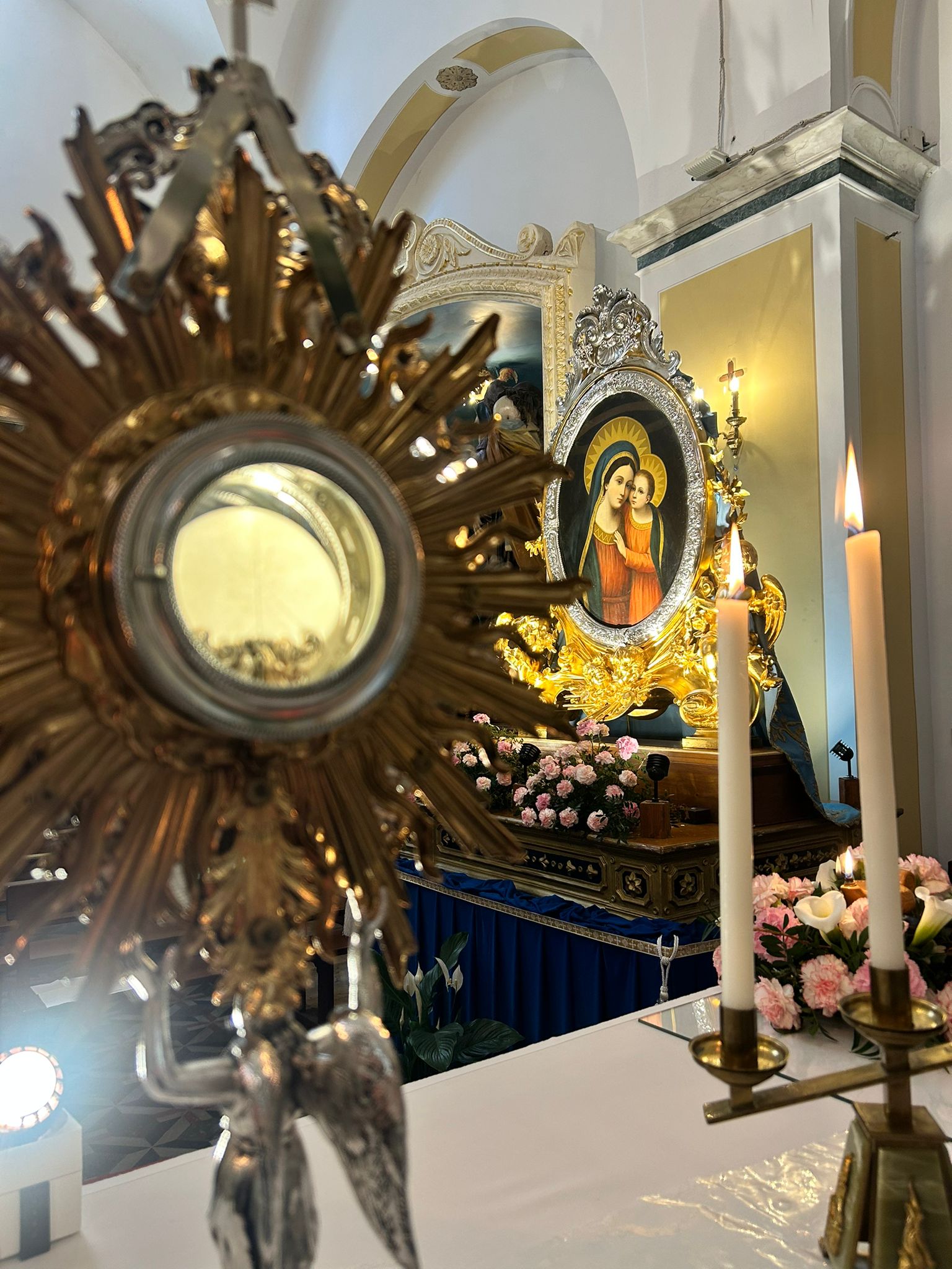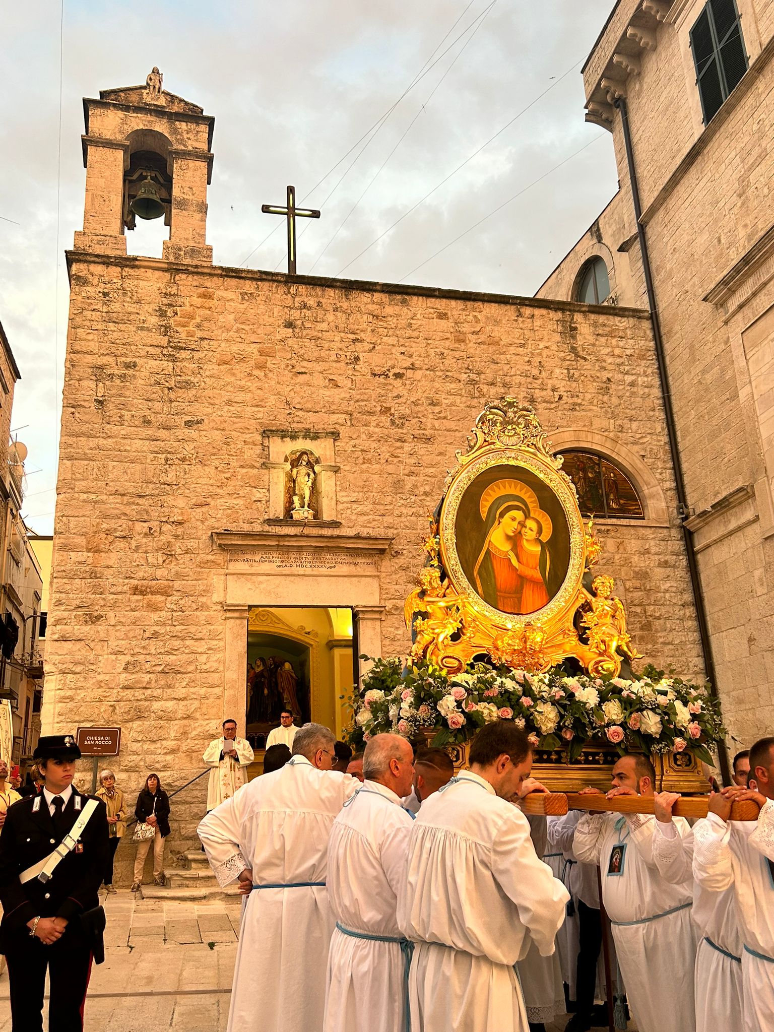 A Ruvo di Puglia, il culto della Madonna del Buon Consiglio risale alla prima metà dell’Ottocento ed è legato alla chiesa di San Rocco, dove si venera un’icona ovale raffigurante la Vergine col Bambino, ispirata all’immagine miracolosa scoperta a Genazzano nel 1467. La devozione venne formalizzata nel 1824 con l’istituzione di un Monte di sorelle, oggi Pia Unione della Madonna del Buon Consiglio, ancora attiva nelle celebrazioni.